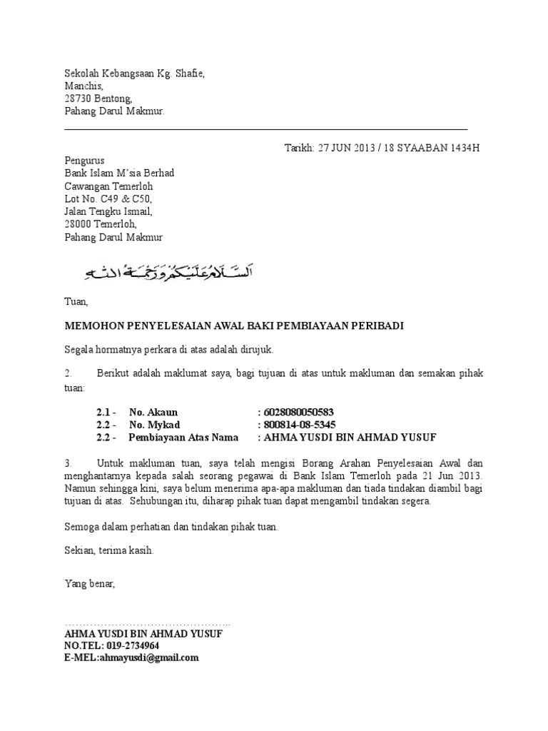 Contoh surat permohonan penyelesaian pinjaman peribadi. 4 Rujuk bank terlebih dahulu untuk mengetahui jika ada sebarang penalti atau apa-apa sekatan yang berkaitan KETAHUI LEBIH LANJUT KETAHUI LEBIH LANJUT. Baki pinjaman pokok tu lambat berkurang terutama untuk 10 tahun pertama.