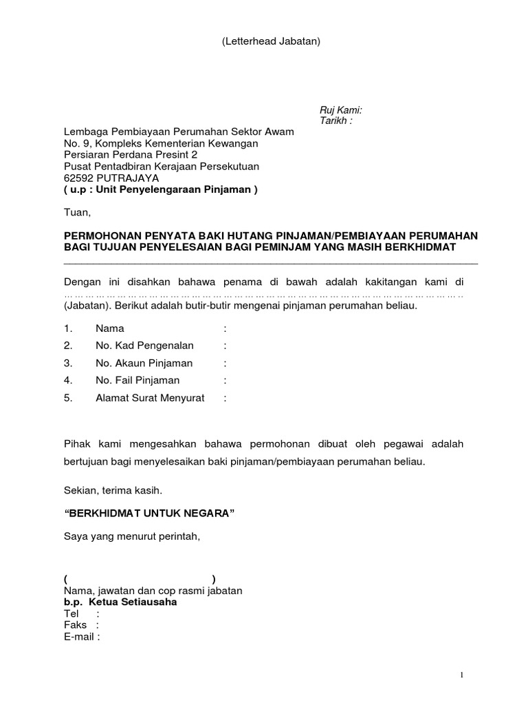 Contoh surat permohonan penyelesaian pinjaman peribadisehubungan dengan itu sukacita saya memohon kerjasama pihak tuan untuk memberikan. Surat permohonan penyata baki hutang pinjaman untuk tujuan penyelesaian penuh. Anda mungkin masih perlu membayar pinjaman perumahan kepada bank jika lewat membatalkan spa ataupun snp.